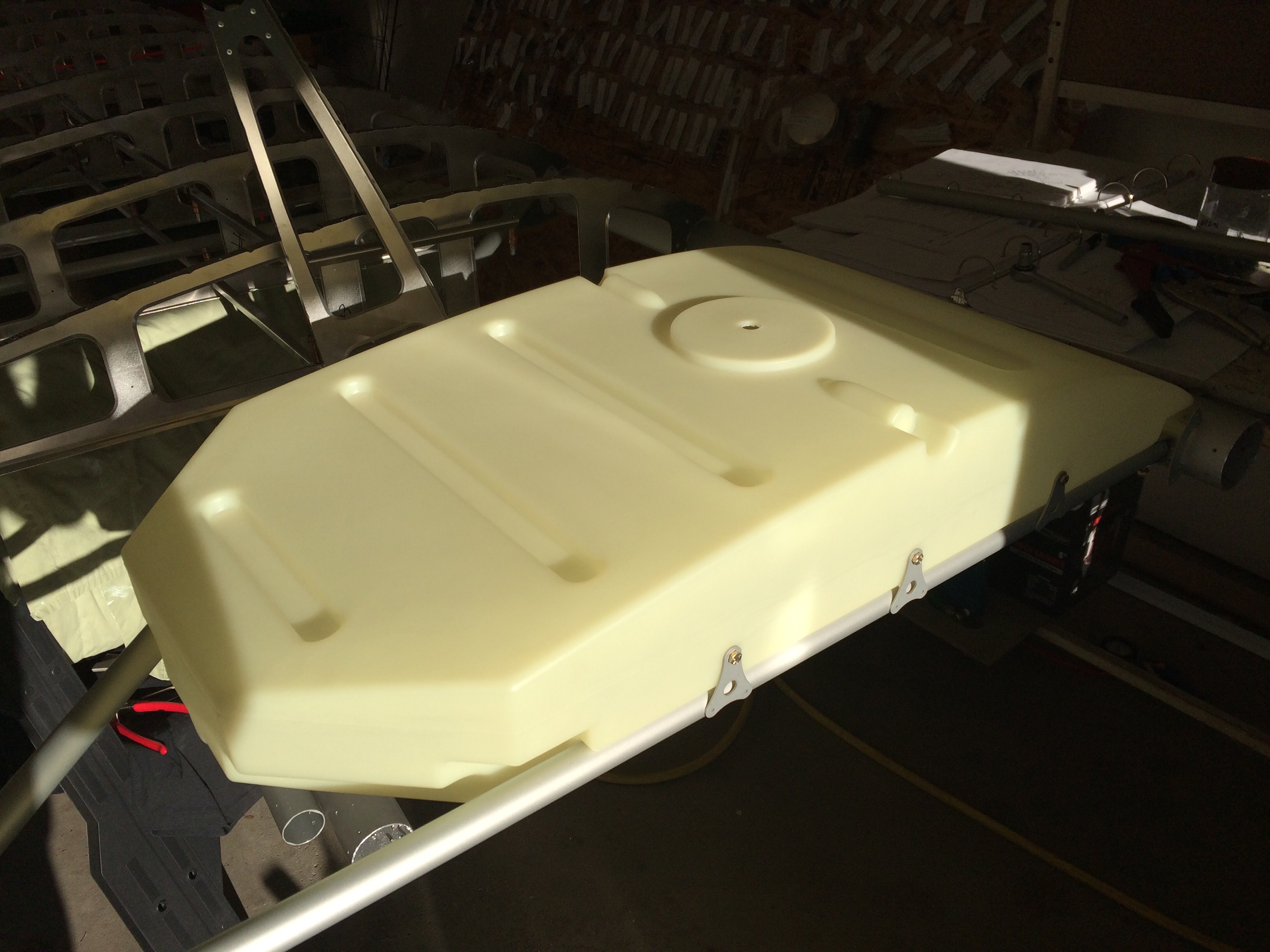 Did a little work this evening and got the brace installed for the fuel tank and got the tabs that hold the fuel tank down bolted to the tank. Decided not to start drilling them as it would have taken longer than I had. Either way it's looking better everyday. Â