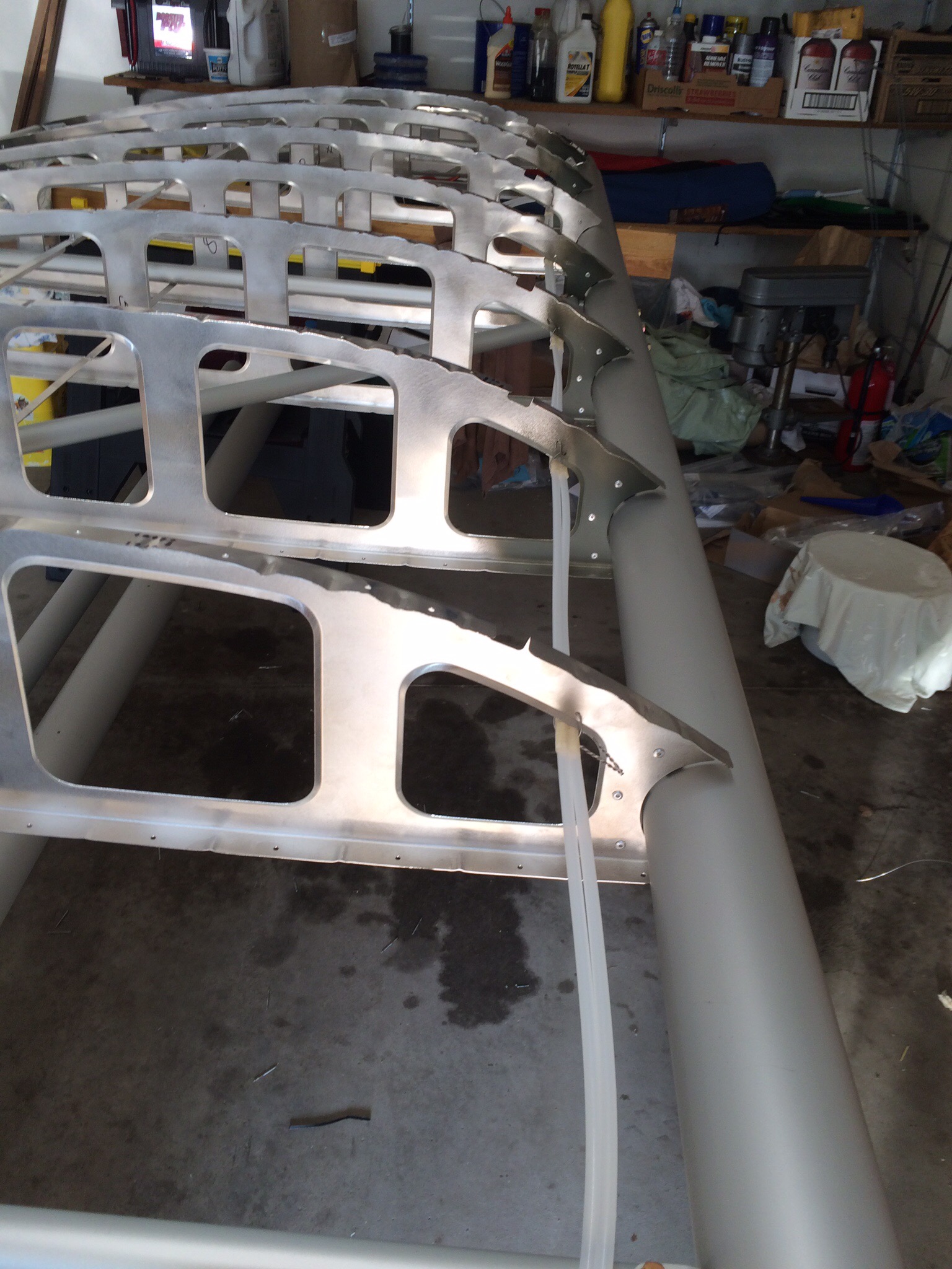 Finally got a decent stretch of work done on the plane. I fixed my issue with the spar attach bolt and got everything put back together. Then I started attaching the pitot/static lines to the ribs and drag braces as well as the flap teleflex cable. I also got all the fuel fittings installed and ready to go to the next step. I found a neat tip on the EAA site in regards to using nylon ties. They suggested using some small heat shrink tubing as anti-chafe material as well as helping to keep the tie in place. It was an inexpensive trick and makes it look very nice.Â