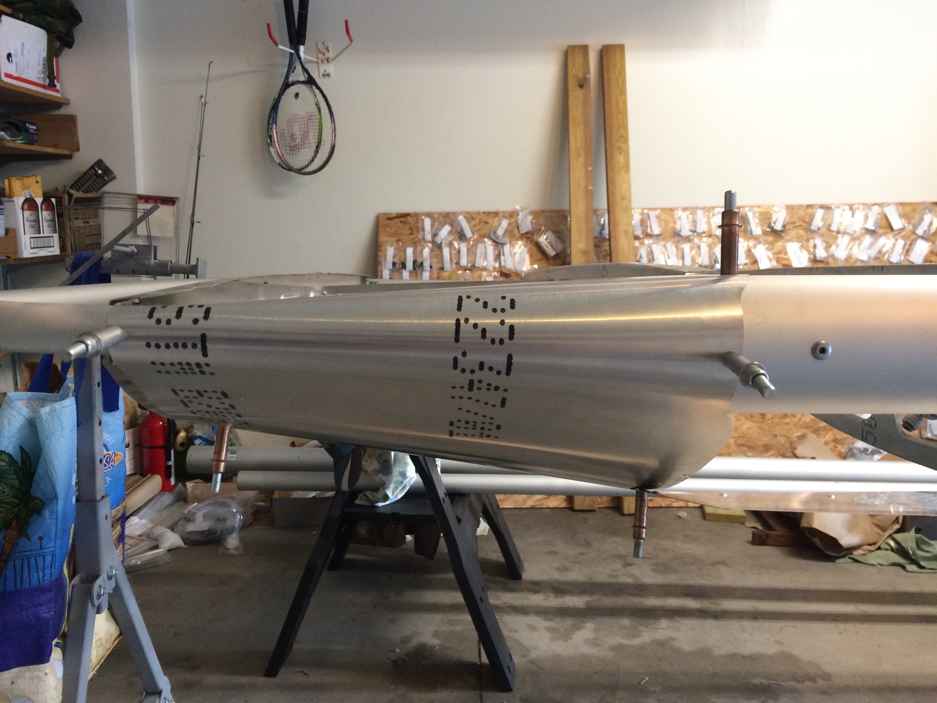 I'm at the point where I am attaching the metal skins to the root area of the wing and leading edge. This has taken a while due to various reasons. The tip wrap was confusing, but simple once you get it on and see what it should look like. That's why I included copious pictures in the hope that someone may find it easier than me the first time around. The bottom root skin was final installed and lines were marked on the spars for where the anodizing needed to be removed so the sheet metal can be glued down.