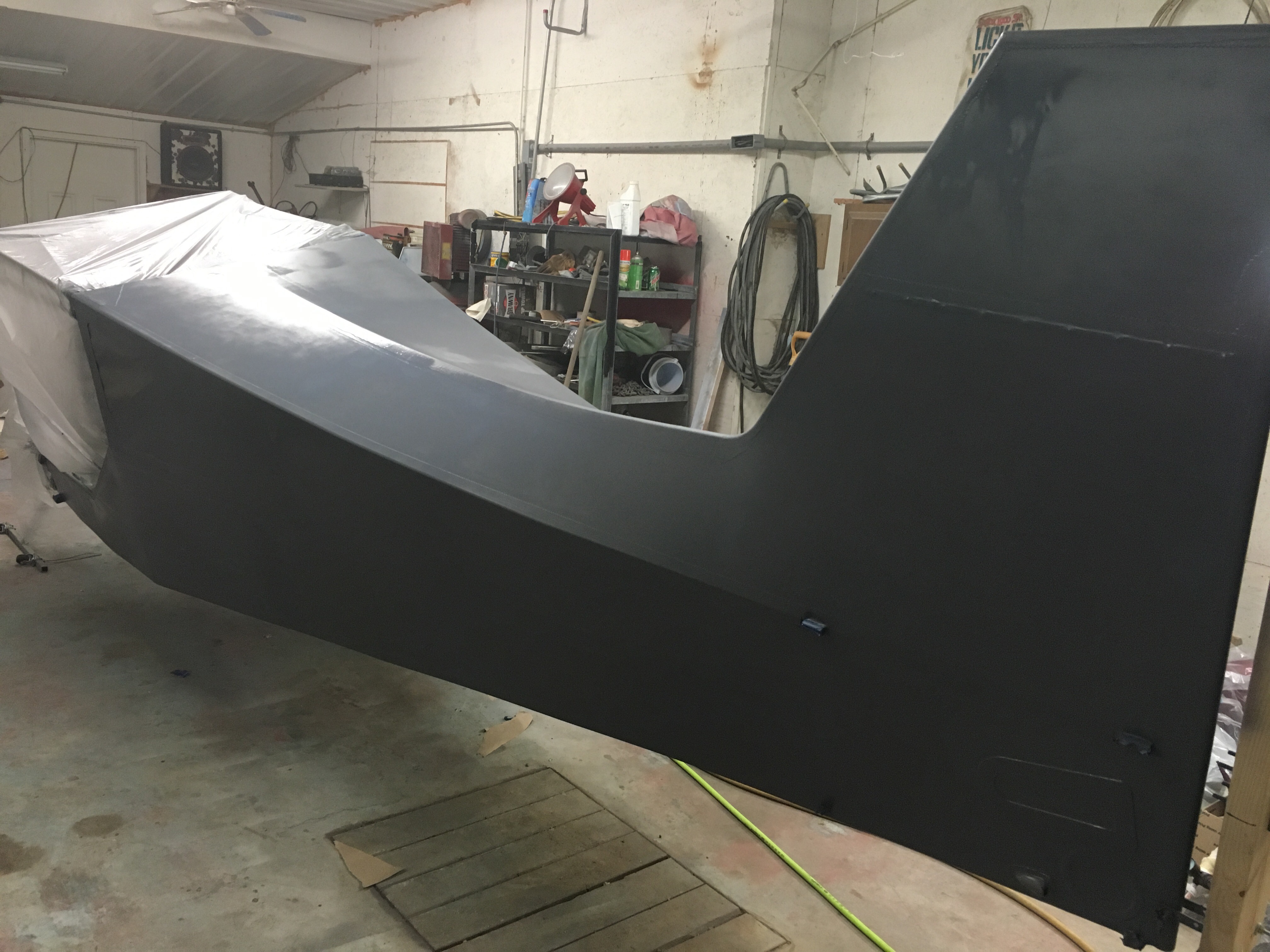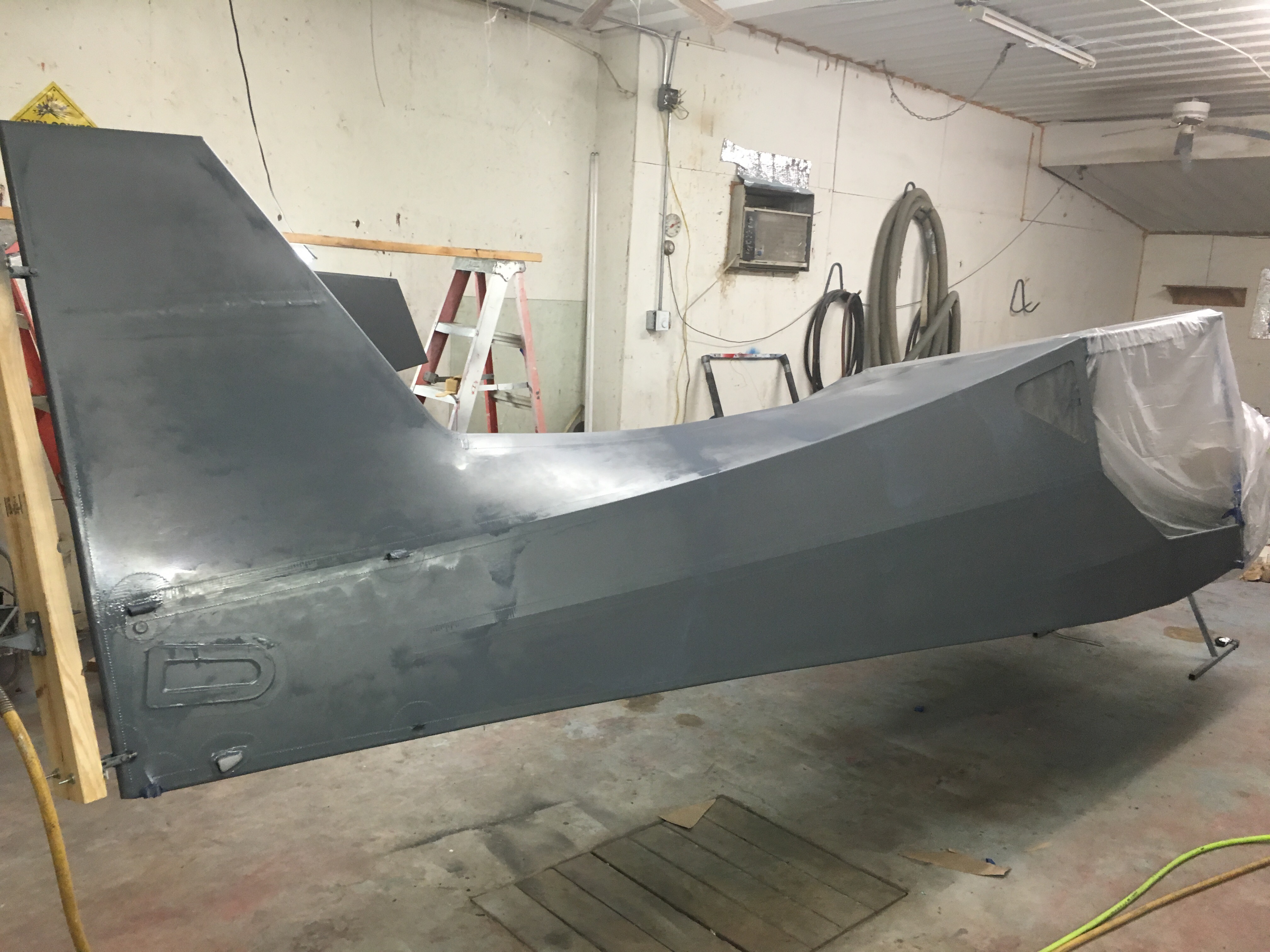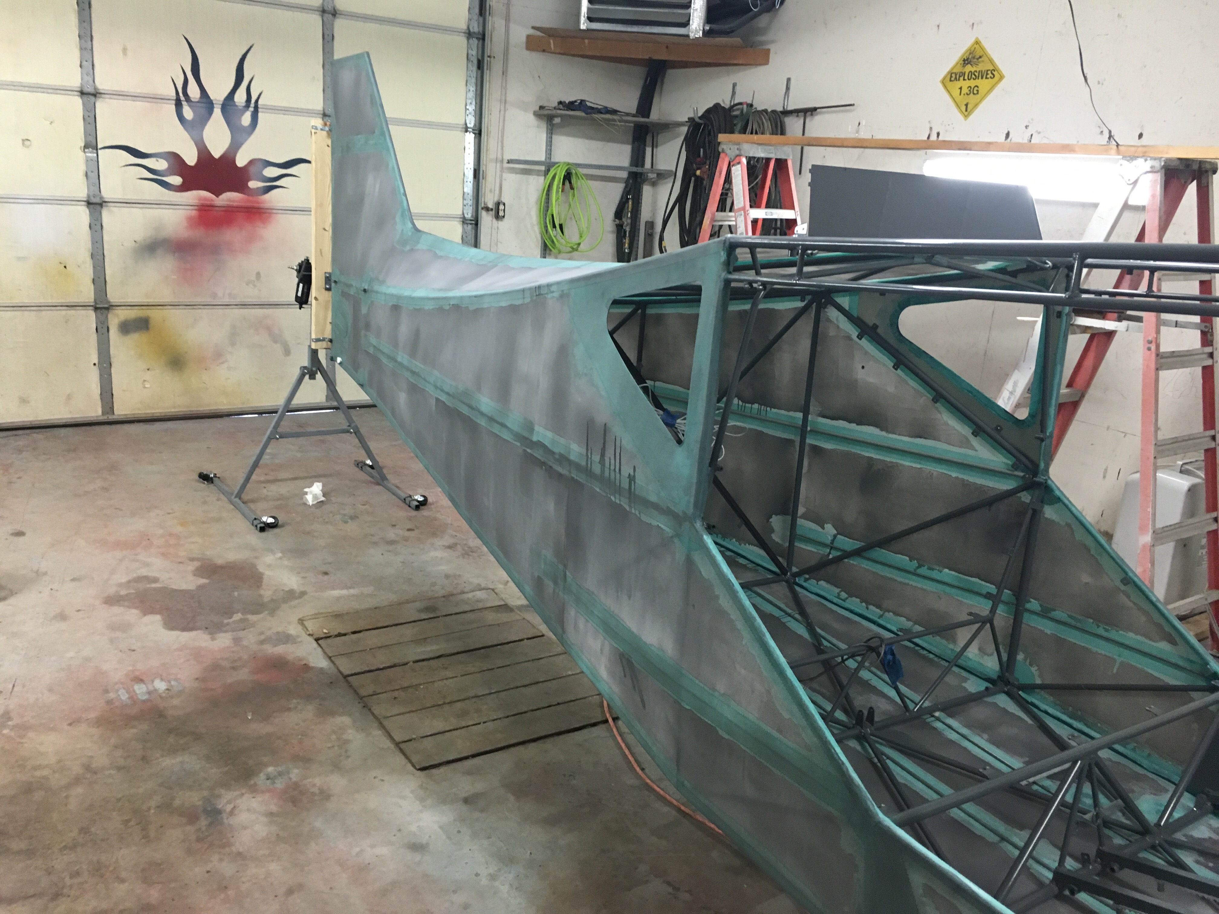 Currently we have a horizontal stabilizer and fuselage that has all the coats of EkoFill on it and is ready for EkoPrime. Took a decent amount of trial and error to get everything working right and we did a good bit of sanding to get some runs out.