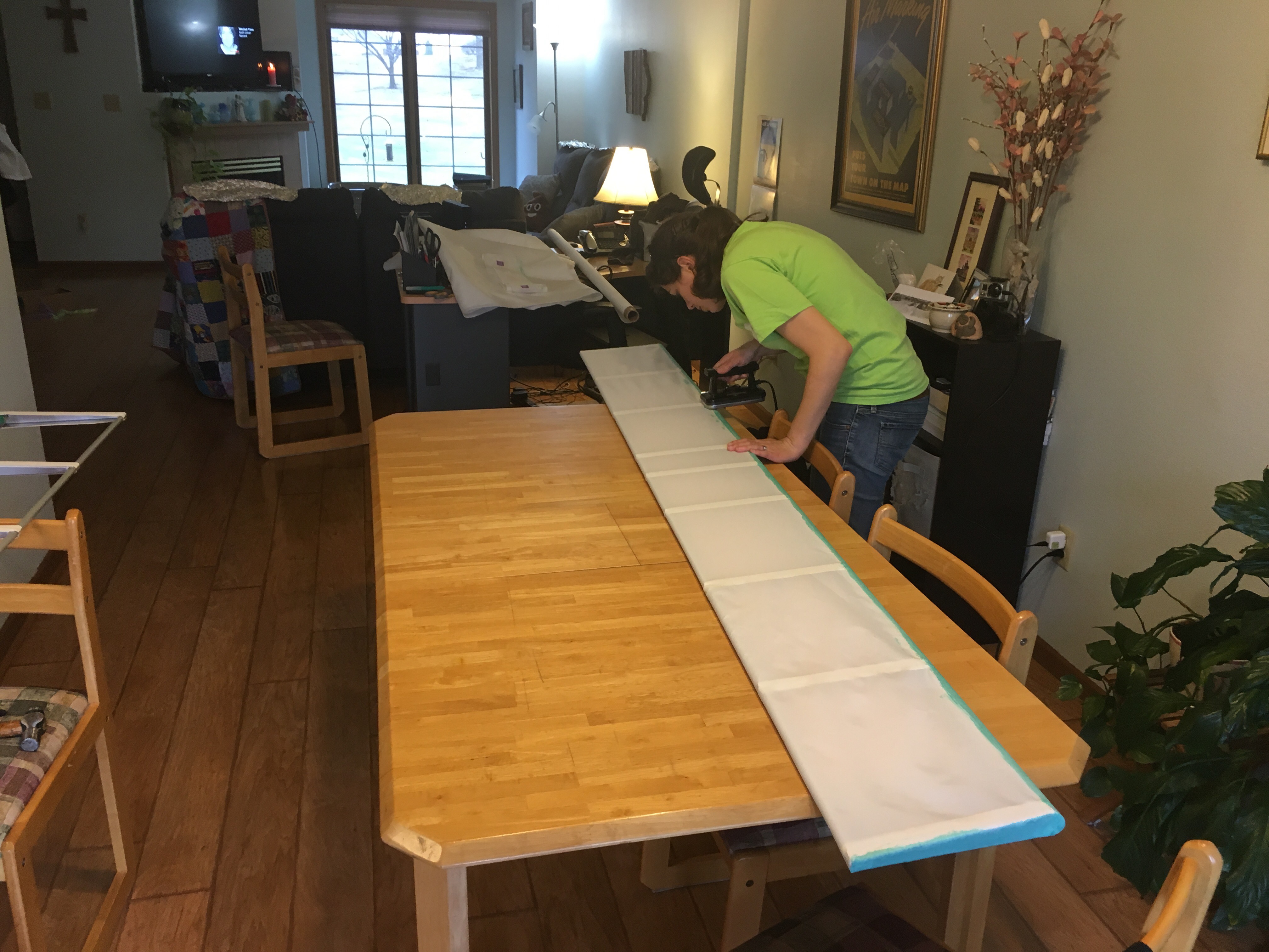If anyone has any questions about the covering process, feel free to reach out to me. I'm not an expert, but I probably have made most of the mistakes you could make for a first-time covering. In case anyone is only reading this post, we used the Stewart Systems covering products. I've enjoyed them and I haven't had to wear a respirator and I did a lot of covering on the kitchen table during the winter.