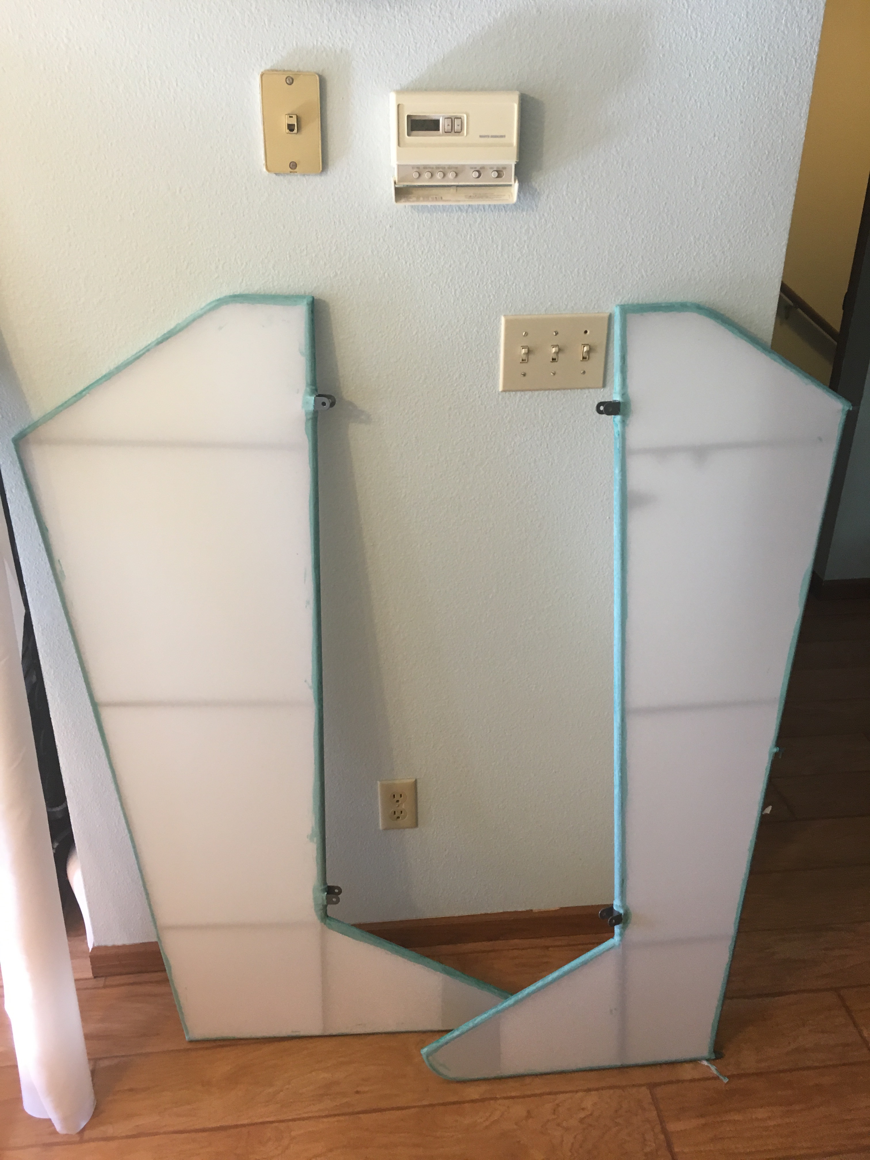 The other pieces didn't prove to be too much of an issue. I didn't shrink the door fabric much past 250 (except where I had wrinkles), but ironing the tape edges and patch edges did shrink it a little more than I initially did, so we will see soon enough if that means I get the opportunity to make new door trim pieces (YAY!).