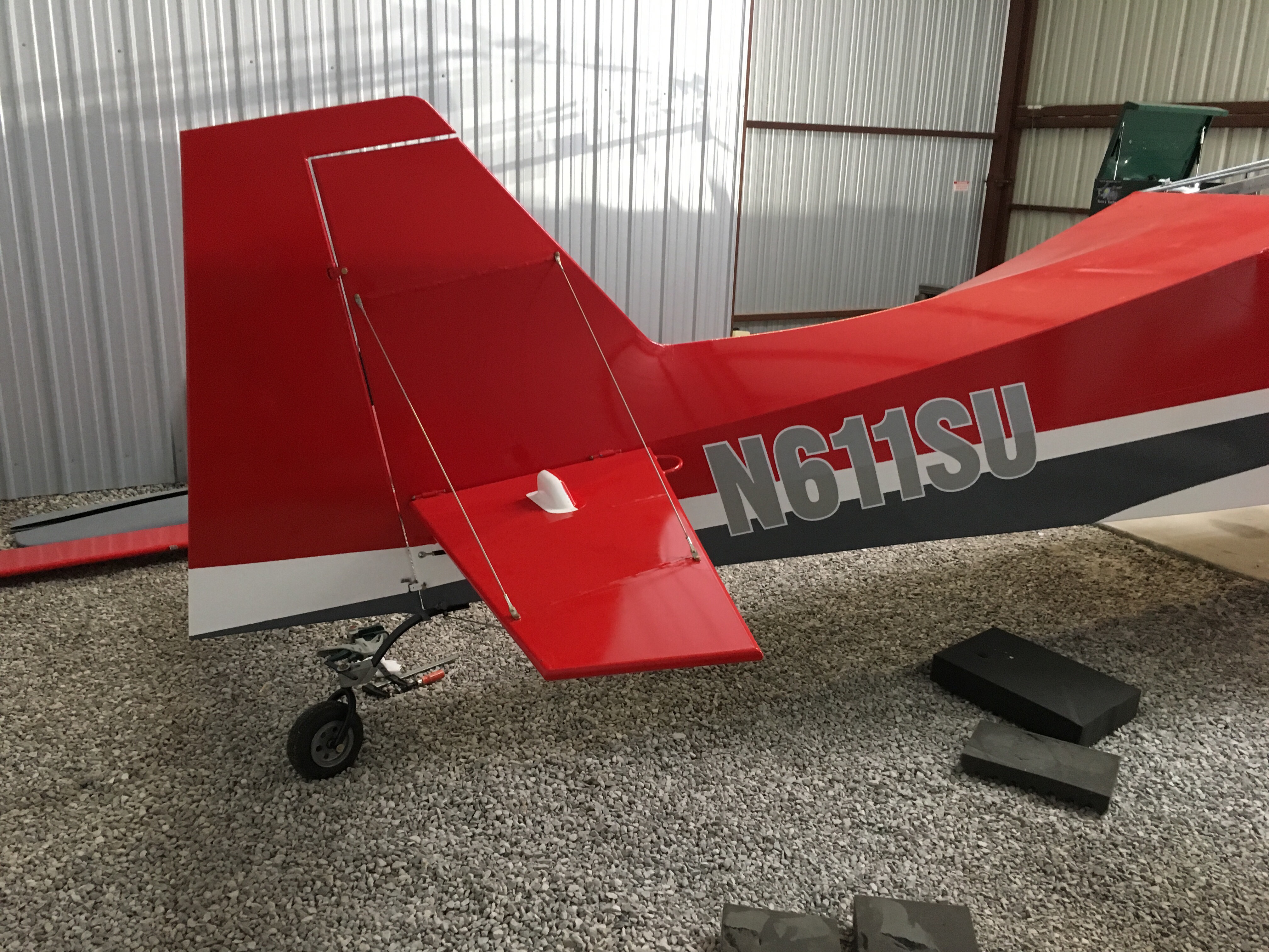 I also managed to final install the tailwheel assembly and the horizontal stabilizers. The tailwheel assembly wasn't hard, but my bushings between the blocks around the tail spring were too long and needed to be shortened slightly. Once that was done, I set to tightening the tail brace wires and rigging the stabilizer. I tried my best to complicate matters and be engineer-y about it to find a specific value that the tension in the wires needed. After bugging RANS and some A&P friends it was determined that there is not a specific value called for and "feels right" was the needed tension. Oh well... They seem to be tight enough and fall in line with what other similar brace wires I've dealt with before (Cub, Champ).