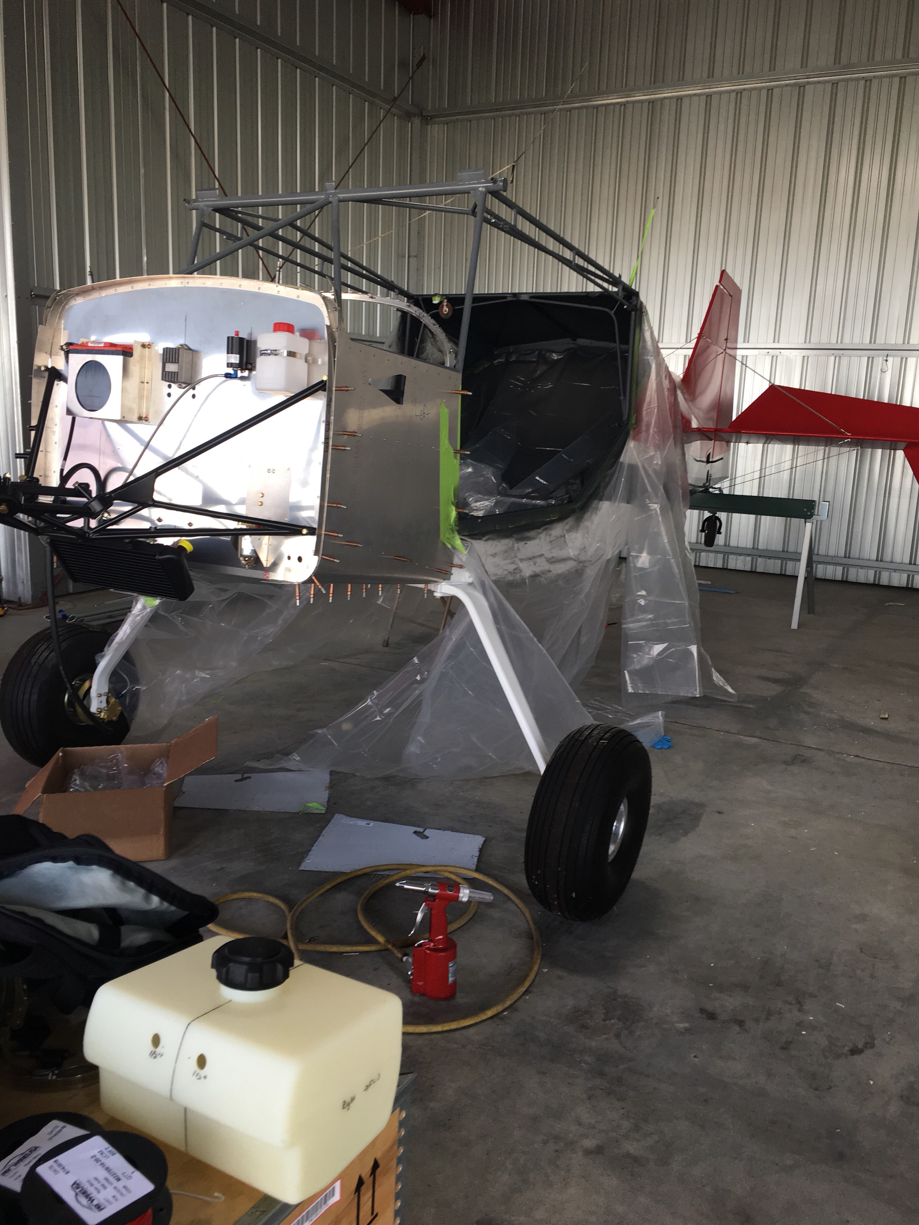 On the painting front, I took quite a few interior parts to get powder coated including the panel. Hope to get them back in a few days. Once they're back, I'll start installing avionics and begin some wiring. The biggest headaches currently are locating a spot for my fuse blocks that are maintainer friendly once the panel is installed. I have a few ideas, so we will see what wins out. I also finally bit the bullet and painted the remaining interior of the aircraft so you don't have to look at the inside of fabric and over spray :-) I masked off the fuselage and then used some high quality spray paint to do the covering. We will see how it turns out in the long run, but I should be able to do touch ups if it gets bad.
