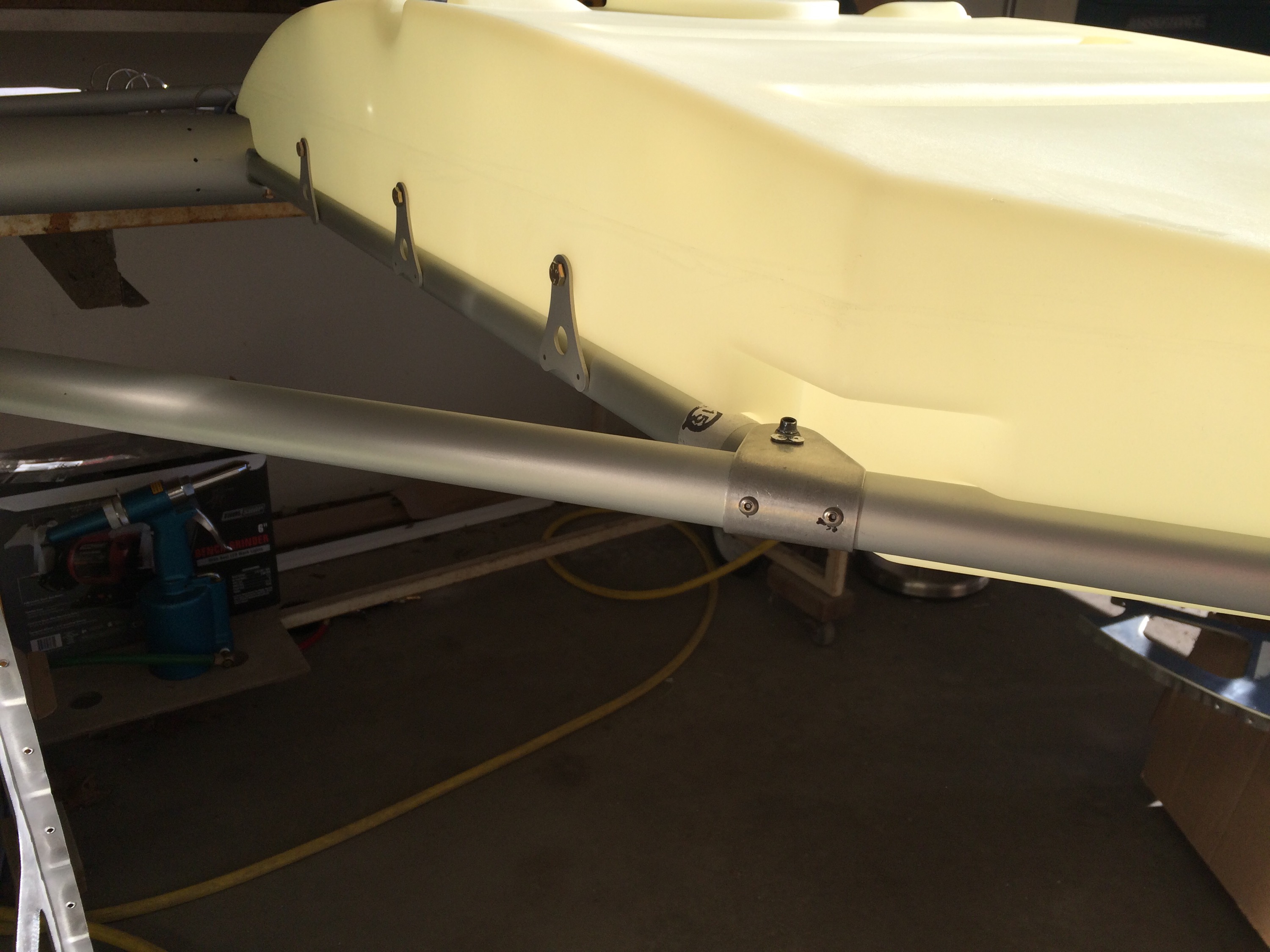 Did a little work this evening and got the brace installed for the fuel tank and got the tabs that hold the fuel tank down bolted to the tank. Decided not to start drilling them as it would have taken longer than I had. Either way it's looking better everyday. Â