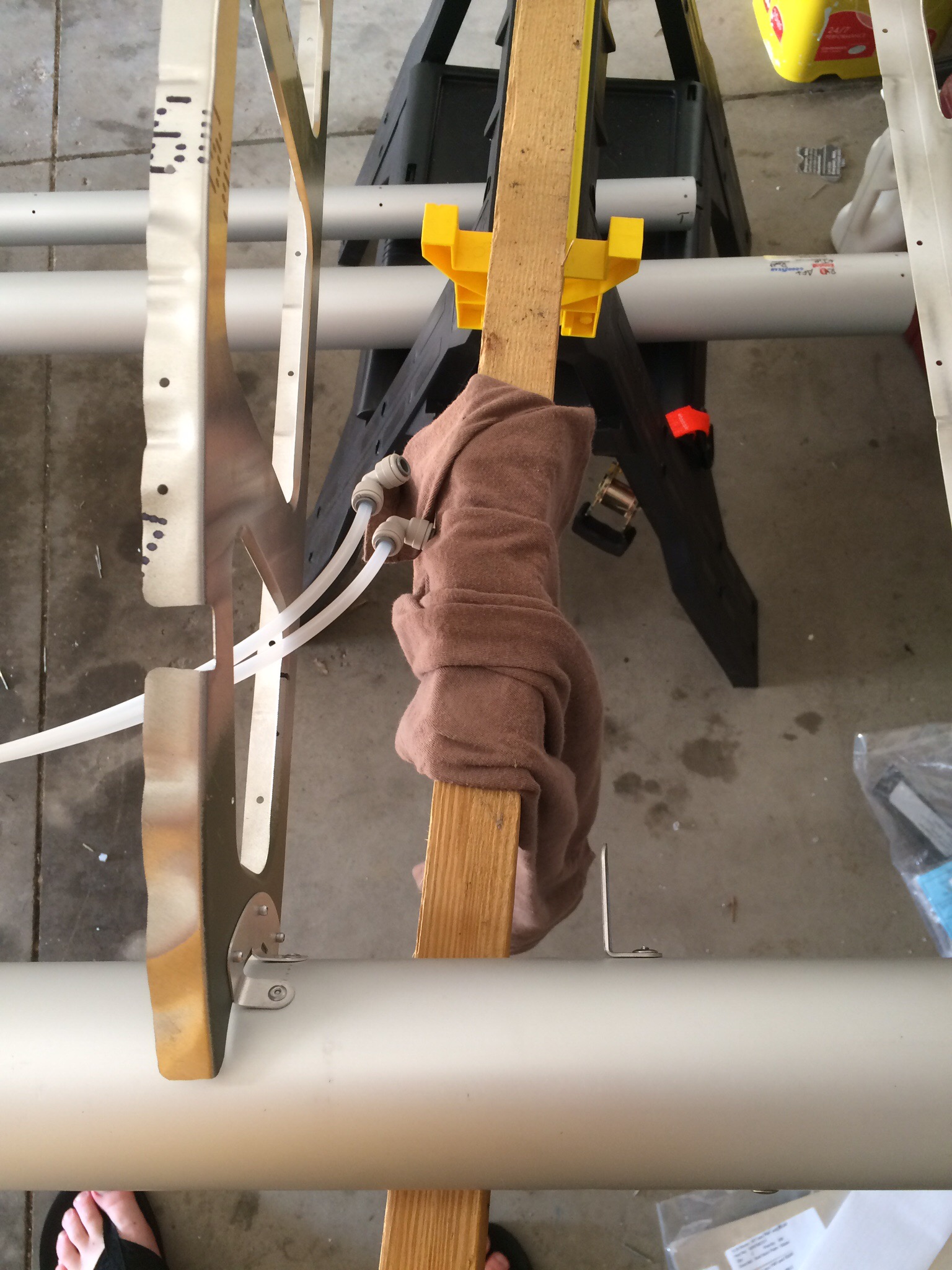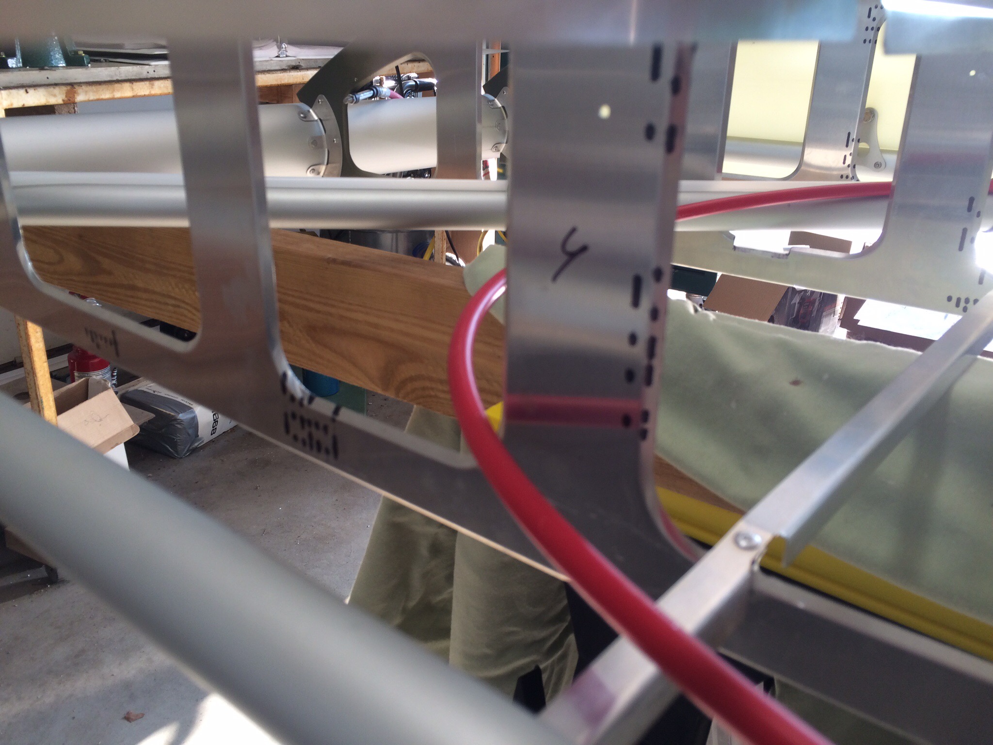 Finally got a decent stretch of work done on the plane. I fixed my issue with the spar attach bolt and got everything put back together. Then I started attaching the pitot/static lines to the ribs and drag braces as well as the flap teleflex cable. I also got all the fuel fittings installed and ready to go to the next step. I found a neat tip on the EAA site in regards to using nylon ties. They suggested using some small heat shrink tubing as anti-chafe material as well as helping to keep the tie in place. It was an inexpensive trick and makes it look very nice.Â