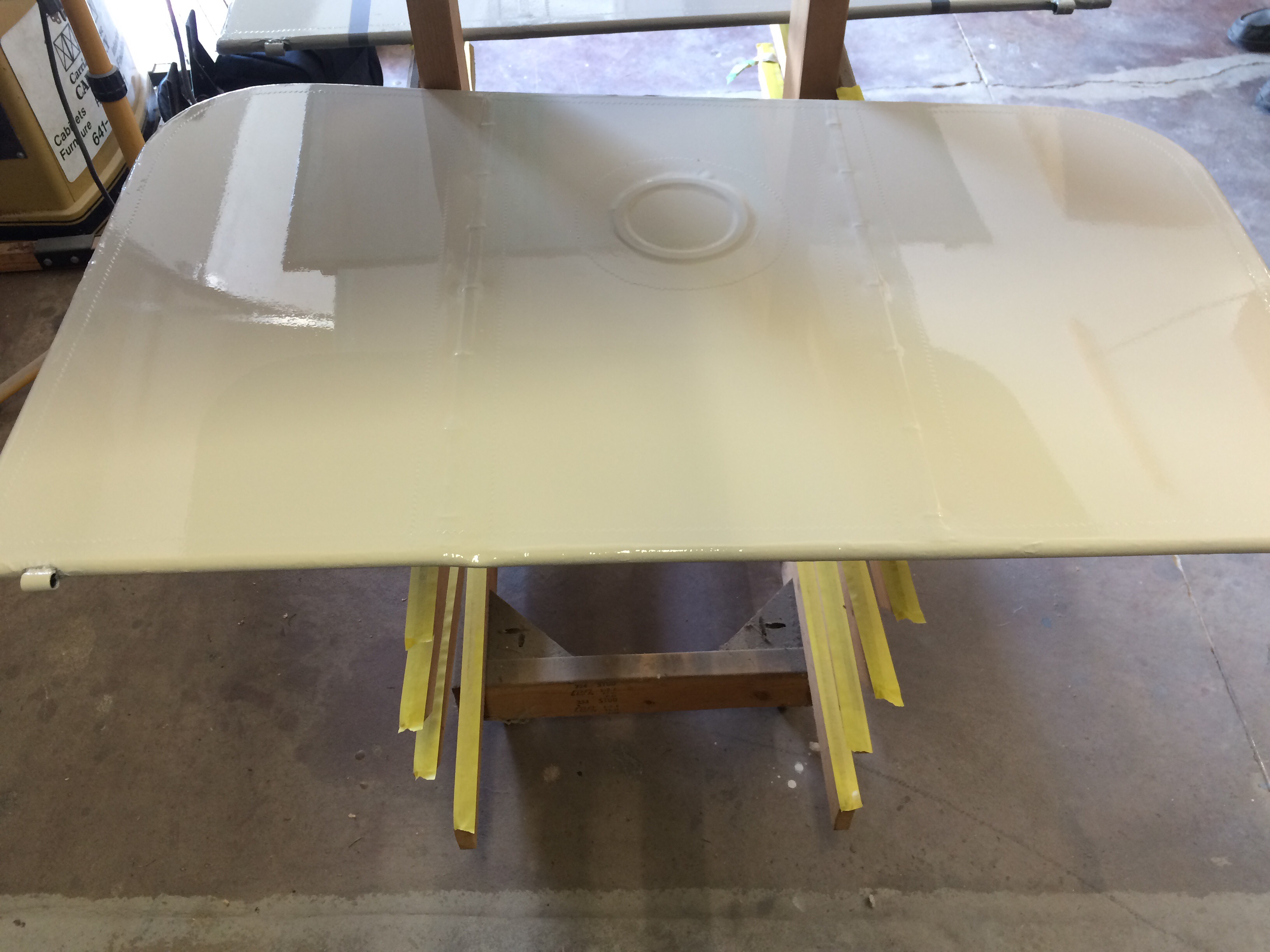 This past weekend I went to a three day course on the Stewart System. It reinforced some covering techniques and more importantly we went all the way through a topcoat on the frame. I learned a lot and found out that the painting thing probably won't be so scary. It won't be a showplane, but I figure it's like a baby. It'll never be ugly. :-)