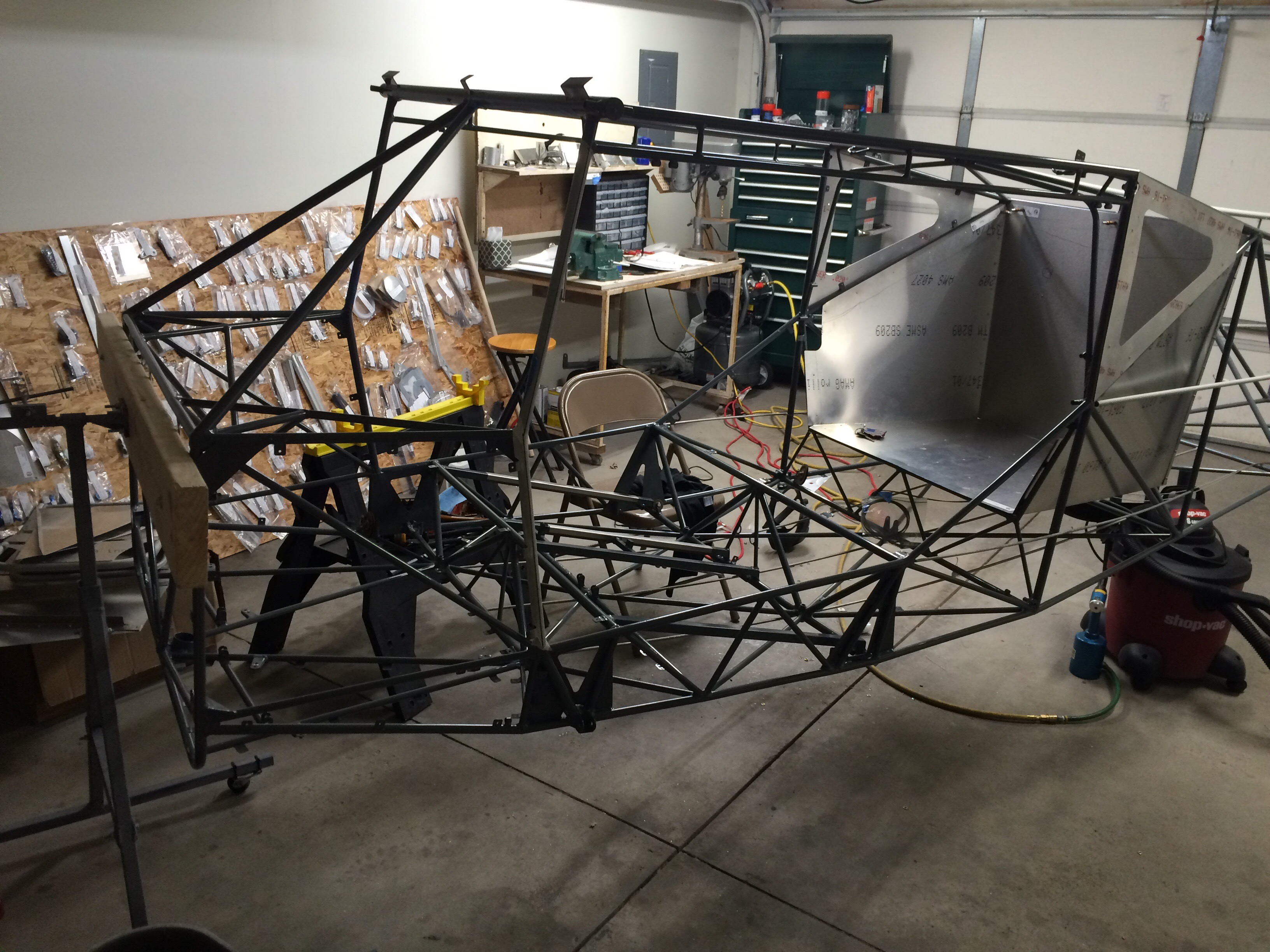 One highlight of putting the fuselage on rolling stands was moving it out into the parking lot to sweep the garage out. I missed getting a picture, but it was funny to just see a plane sitting in a condominium parking lot.
