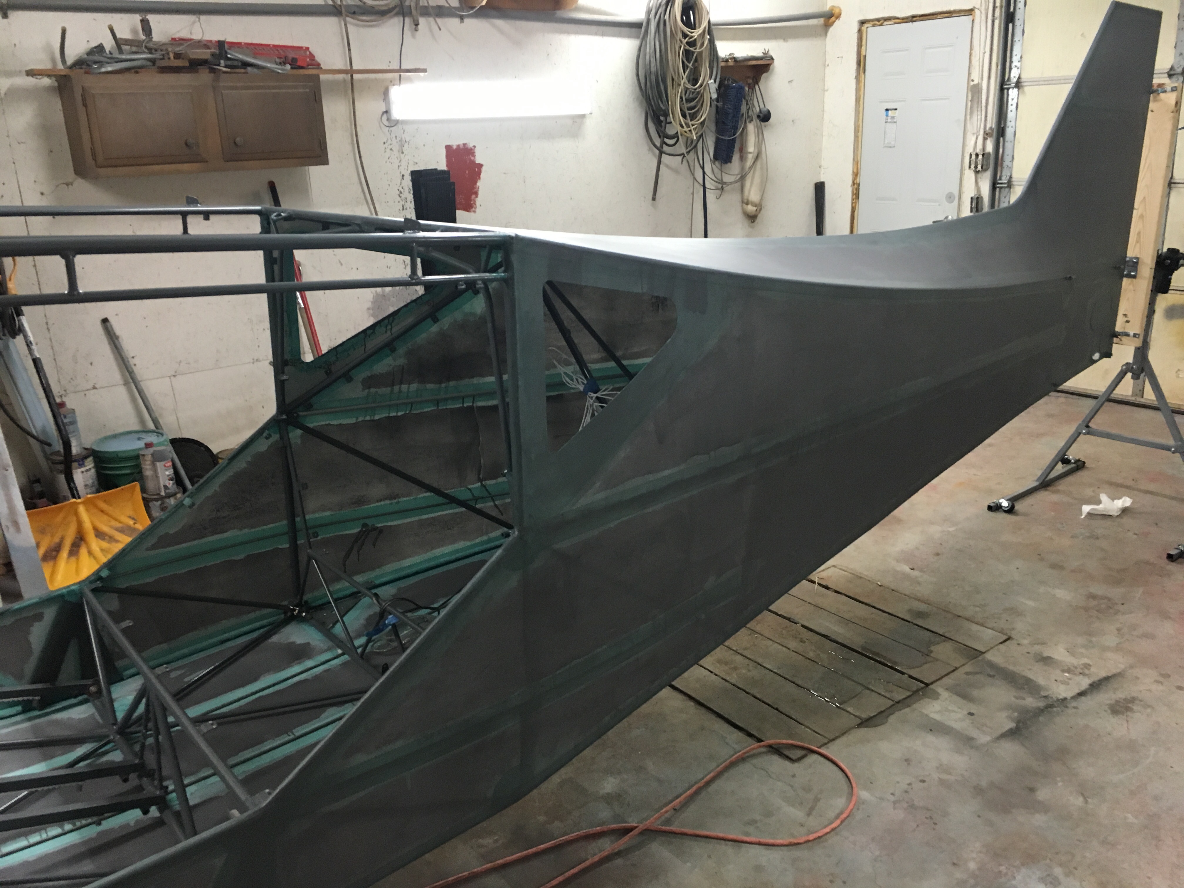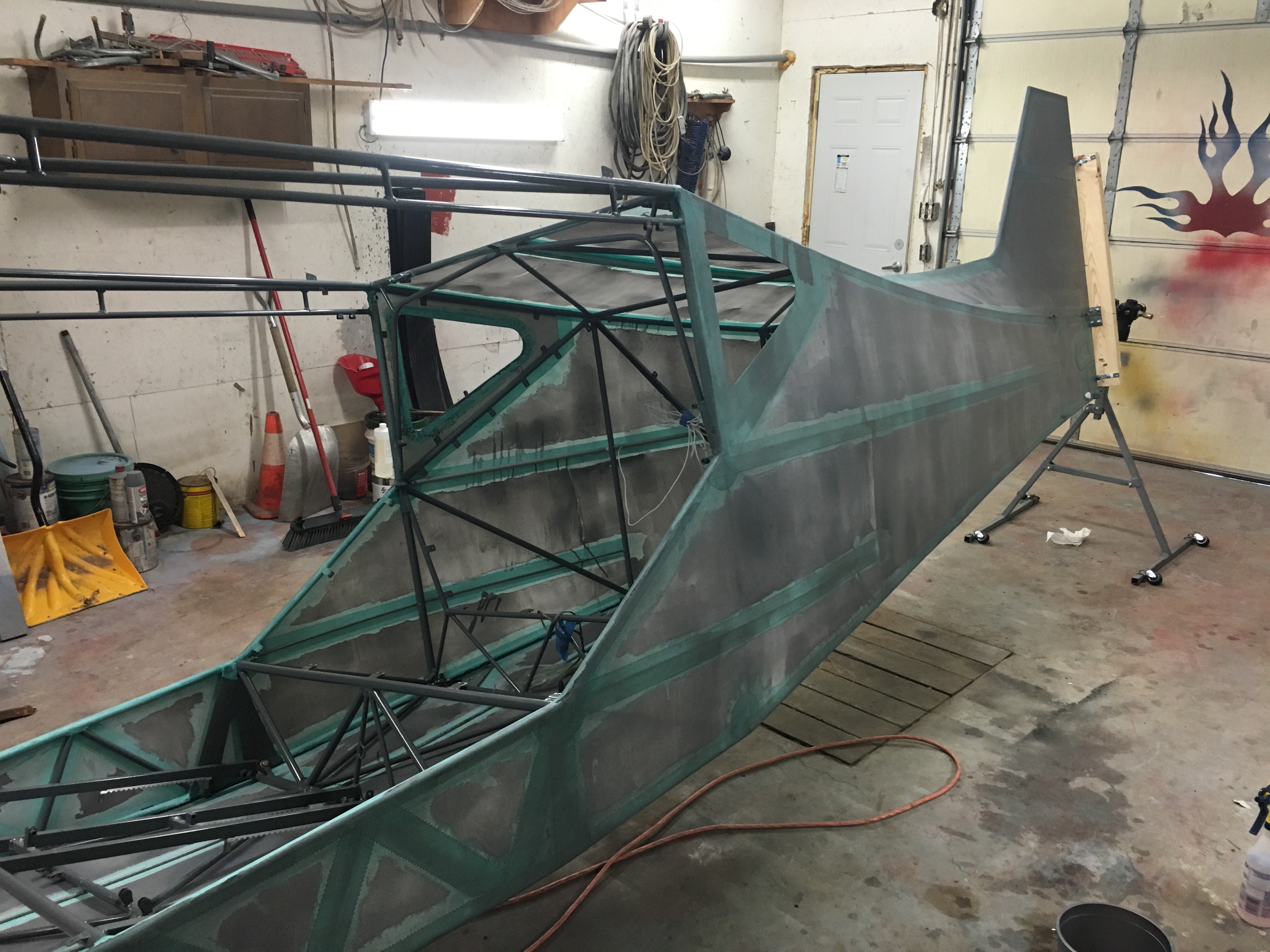 Currently we have a horizontal stabilizer and fuselage that has all the coats of EkoFill on it and is ready for EkoPrime. Took a decent amount of trial and error to get everything working right and we did a good bit of sanding to get some runs out.