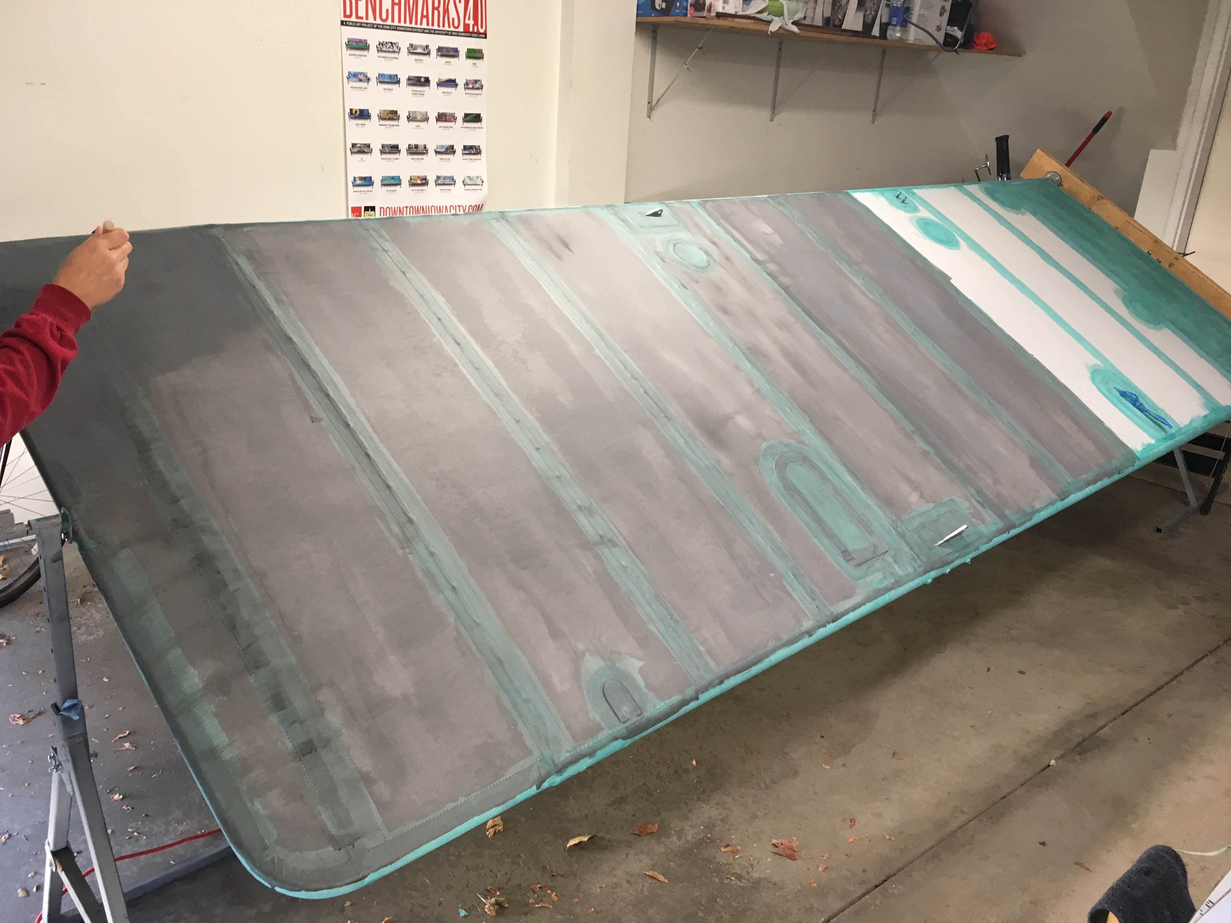 Nothing too exciting else to report there. The process is similar to all the other covering with the exceptions of a few spots that I mentioned in a previous post. I did have the same issues around the tip bow, but this time I only had to use one patch to cover my mess!