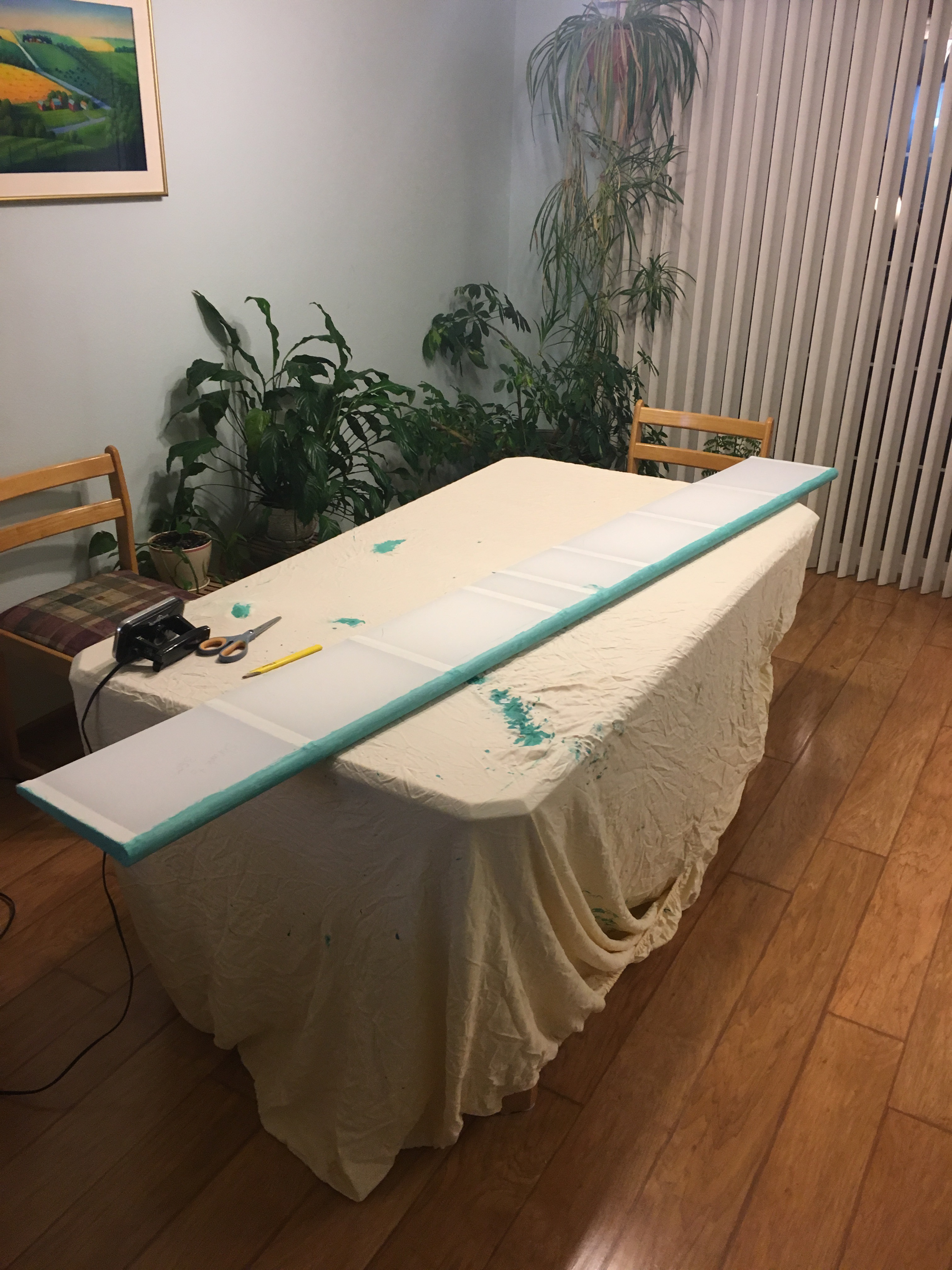 If anyone has any questions about the covering process, feel free to reach out to me. I'm not an expert, but I probably have made most of the mistakes you could make for a first-time covering. In case anyone is only reading this post, we used the Stewart Systems covering products. I've enjoyed them and I haven't had to wear a respirator and I did a lot of covering on the kitchen table during the winter.