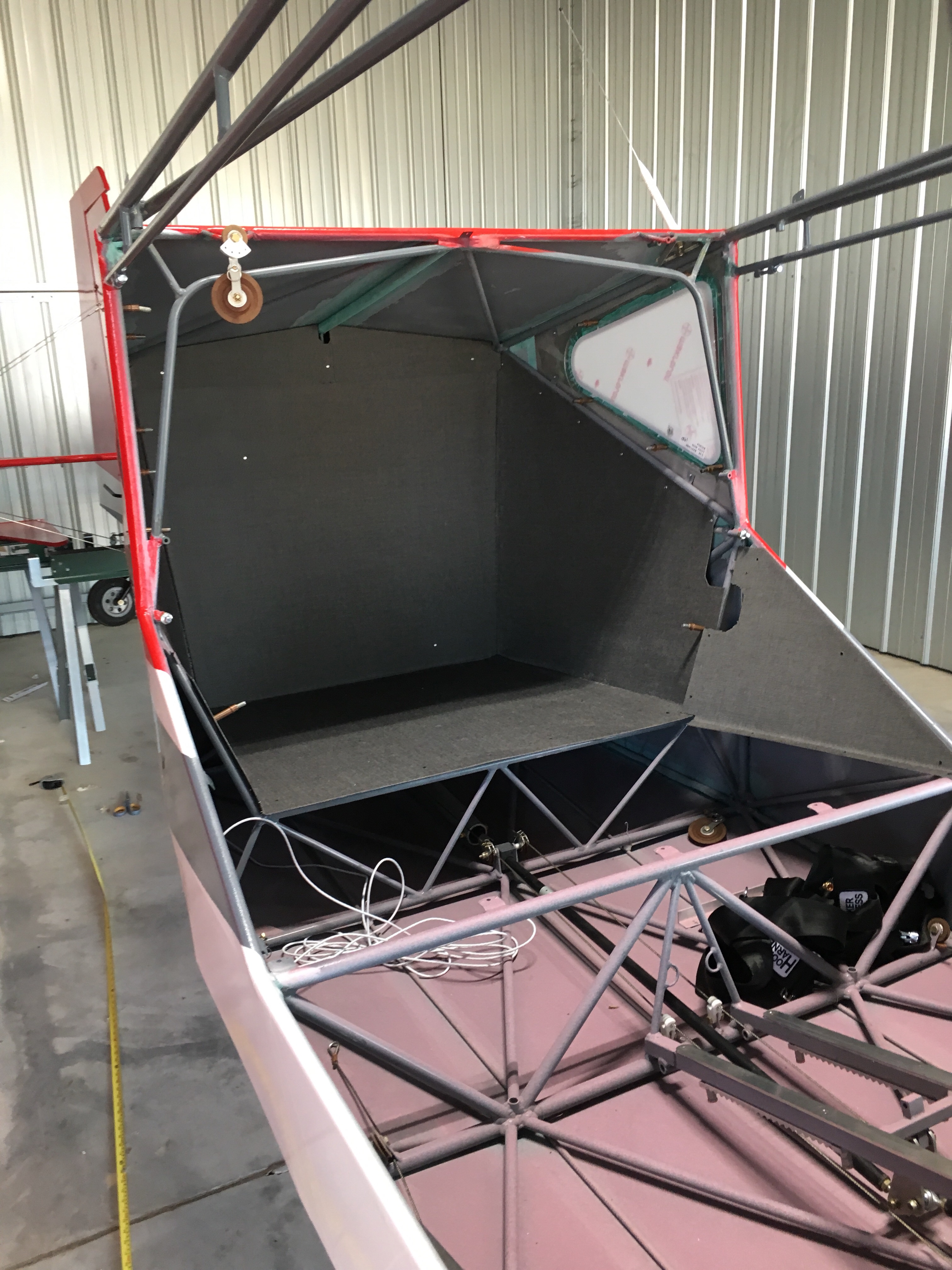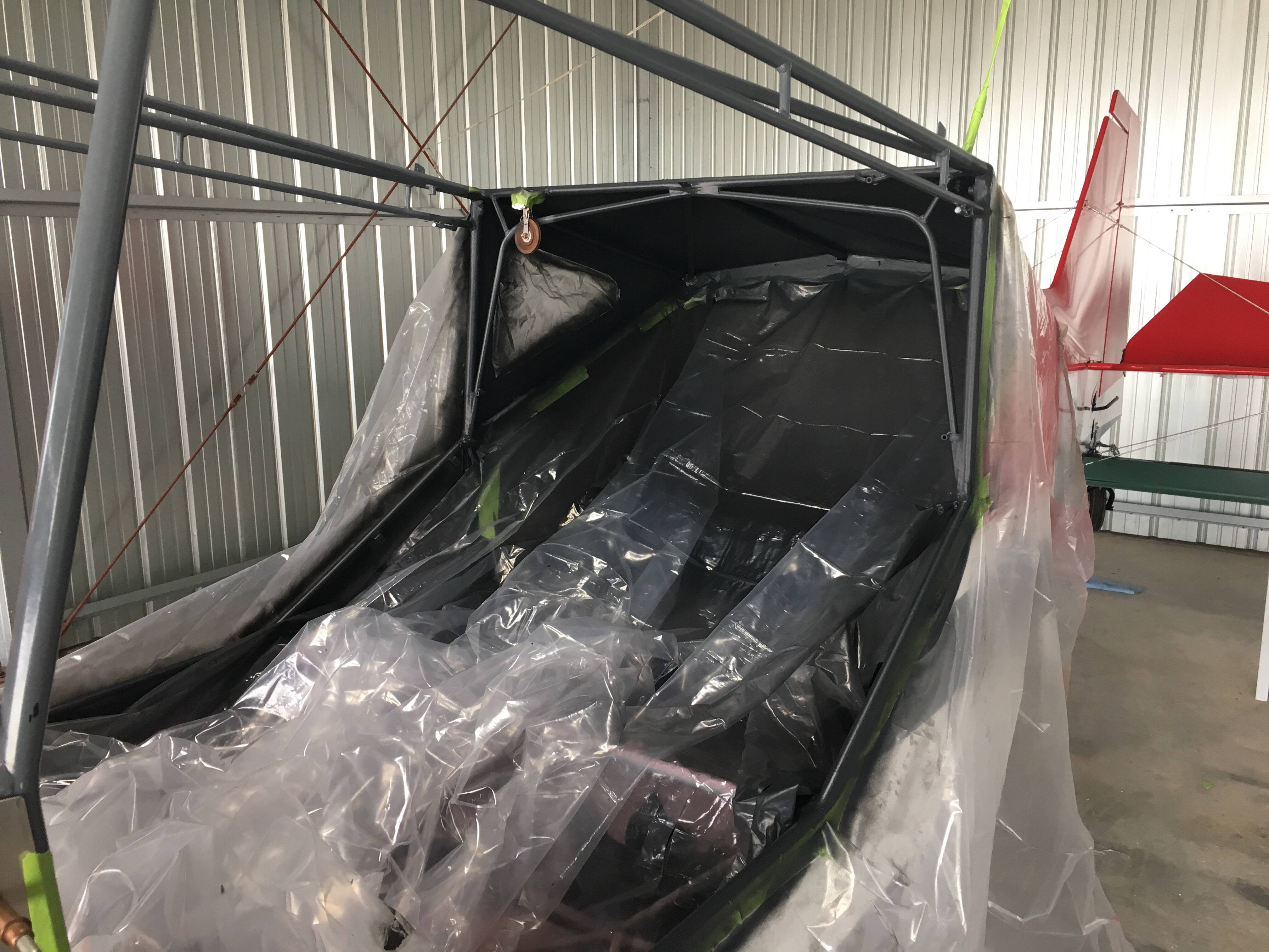 On the painting front, I took quite a few interior parts to get powder coated including the panel. Hope to get them back in a few days. Once they're back, I'll start installing avionics and begin some wiring. The biggest headaches currently are locating a spot for my fuse blocks that are maintainer friendly once the panel is installed. I have a few ideas, so we will see what wins out. I also finally bit the bullet and painted the remaining interior of the aircraft so you don't have to look at the inside of fabric and over spray :-) I masked off the fuselage and then used some high quality spray paint to do the covering. We will see how it turns out in the long run, but I should be able to do touch ups if it gets bad.