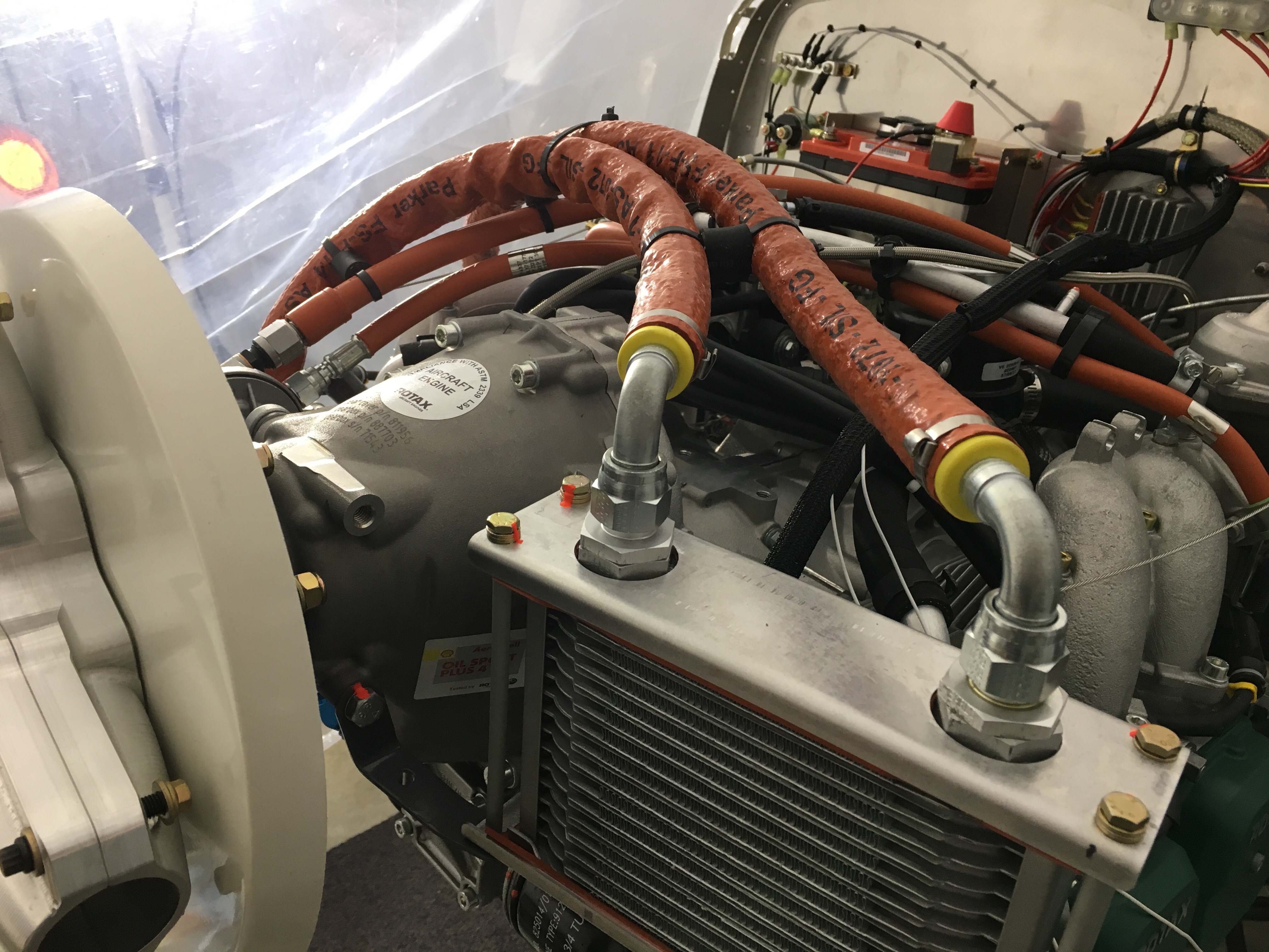 For the lubrication system I finally figured out some hose routing that I was satisfied with and I seem to have avoided buying any other hoses. I did use two 45 degree adapters at the oil pump housing to allow a better route for the hose. So the oil hoses are installed now and the bolts have been safety wired. I will have to remove one hose to add some oil to the cooler initially, but no big deal. All that is left for this is to add oil and pressurize it to make sure it gets where it needs to go. I also installed a cooling fan to the oil cooler to increase the cooling capability. Some other S-20 builders have had oil temp issues and they have solved them in various ways, so we shall see if my install is any good shortly. :-)